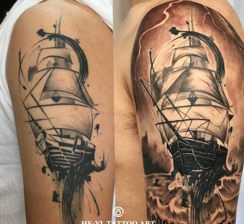 当前位置: 首页 >河北省石家庄市纹身店-合一刺青纹身图案>帆船添加修改纹身图片_手臂欧美写实纹身图案