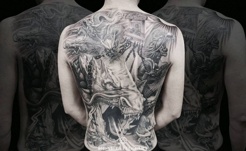 当前位置: 首页 >河北省石家庄市纹身店-合一刺青纹身图案>九龙拉棺纹身图片_背部手臂欧美写实新传统九龙拉棺欧美满背龙满背纹身图案