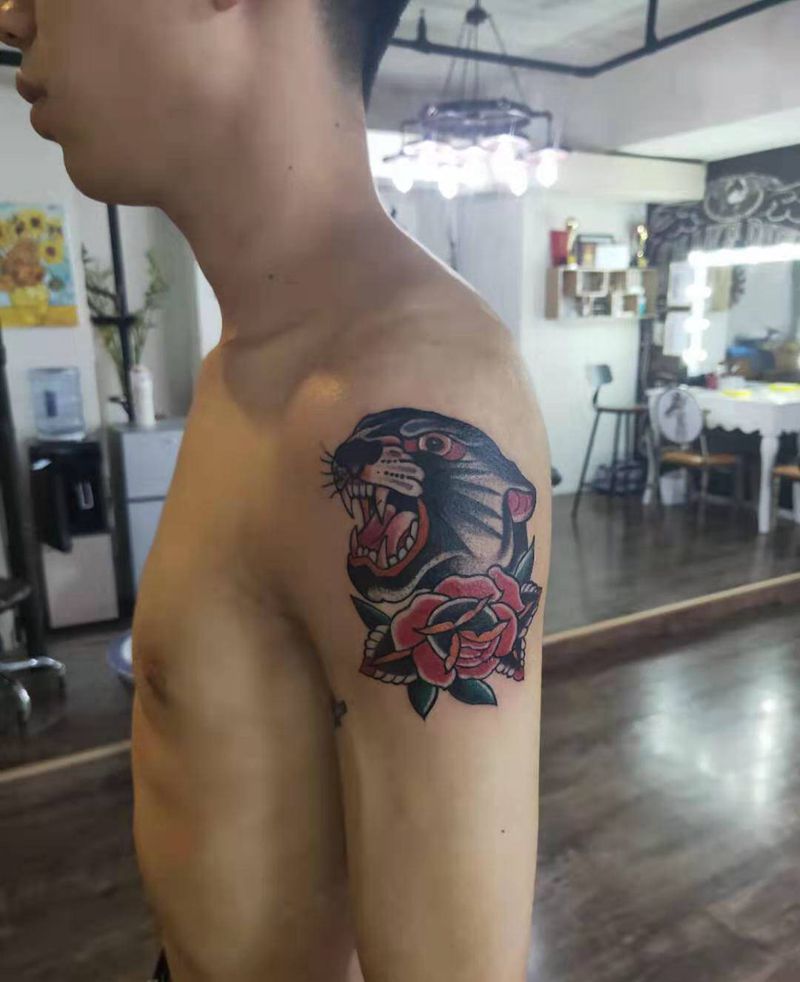 当前位置: 首页 >河北省石家庄市纹身店-李磊刺青会所纹身图案>传统风格虎纹身图片_手臂New School纹身图案