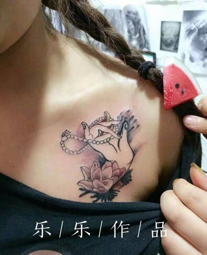 • 女性大花胸纹身_43张霸气漂亮的女性大花胸纹身图案作品