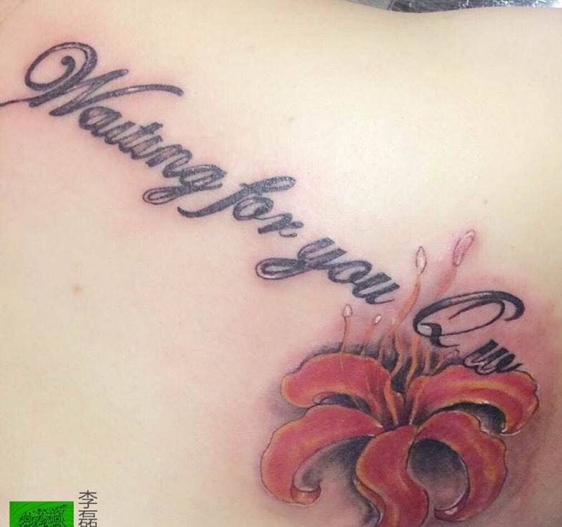 当前位置: 首页 >河北省石家庄市纹身店-李磊刺青会所纹身图案>彼岸花加英文字母纹身图片_肩部清新植物纹身图案