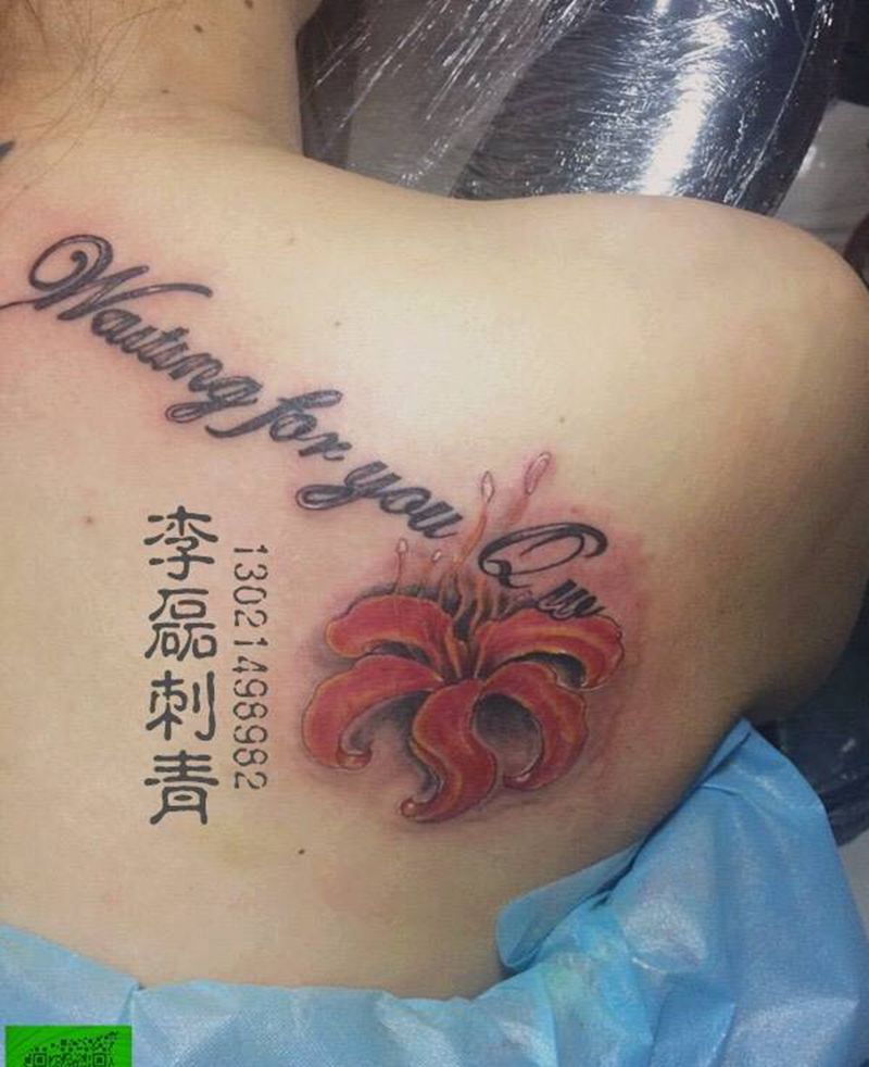 当前位置: 首页 >河北省石家庄市纹身店-李磊刺青会所纹身图案>彼岸花加英文字母纹身图片_肩部清新植物纹身图案