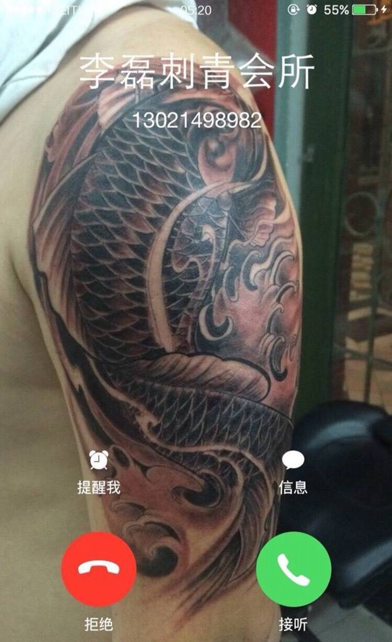 当前位置: 首页 >河北省石家庄市纹身店-李磊刺青会所纹身图案>大臂传统鲤鱼纹身图片_手臂传统动物纹身图案