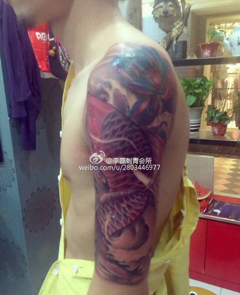 当前位置: 首页 >河北省石家庄市纹身店-李磊刺青会所纹身图案>大臂彩色鱼纹身图片_手稿手臂传统动物纹身图案