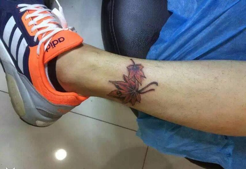 当前位置: 首页 >河北省石家庄市纹身店-李磊刺青会所纹身图案>小腿枫叶纹身图片_腿部清新植物纹身图案