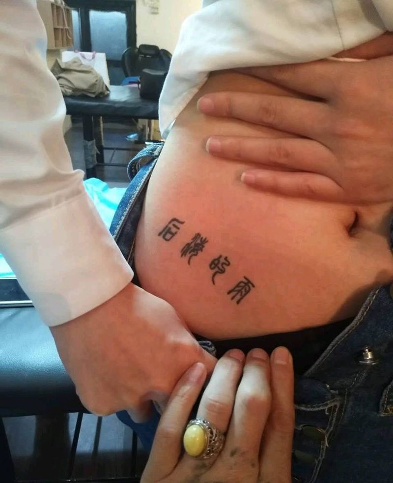 • T关于私处得爱!纹身图片_成品腹部清新字符图腾纹身图案