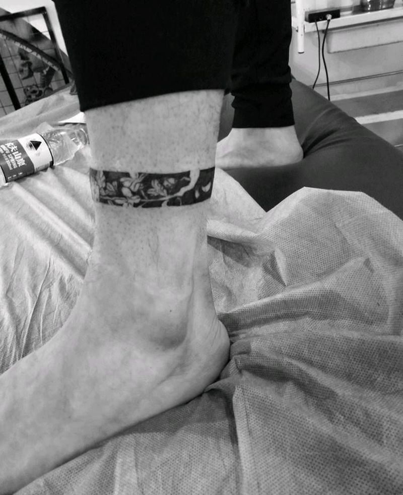 情侣小腿图腾环纹身图片_腿部清新图腾手稿纹身图案