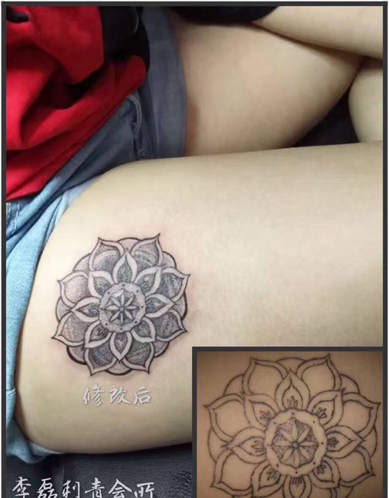 当前位置: 首页 >河北省石家庄市纹身店-李磊刺青会所纹身图案>修改纹身图片_图腾腿部清新成品纹身图案