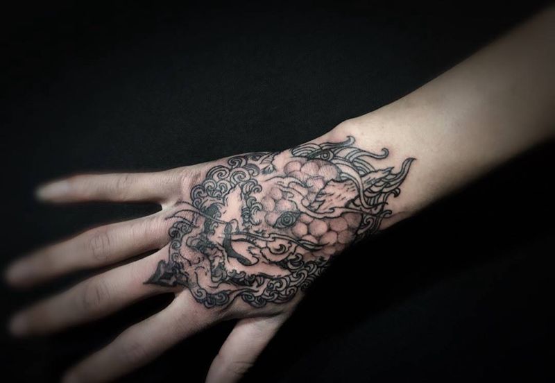 当前位置: 首页 >河北省石家庄市纹身店-李磊刺青会所纹身图案>手背唐狮纹身图片