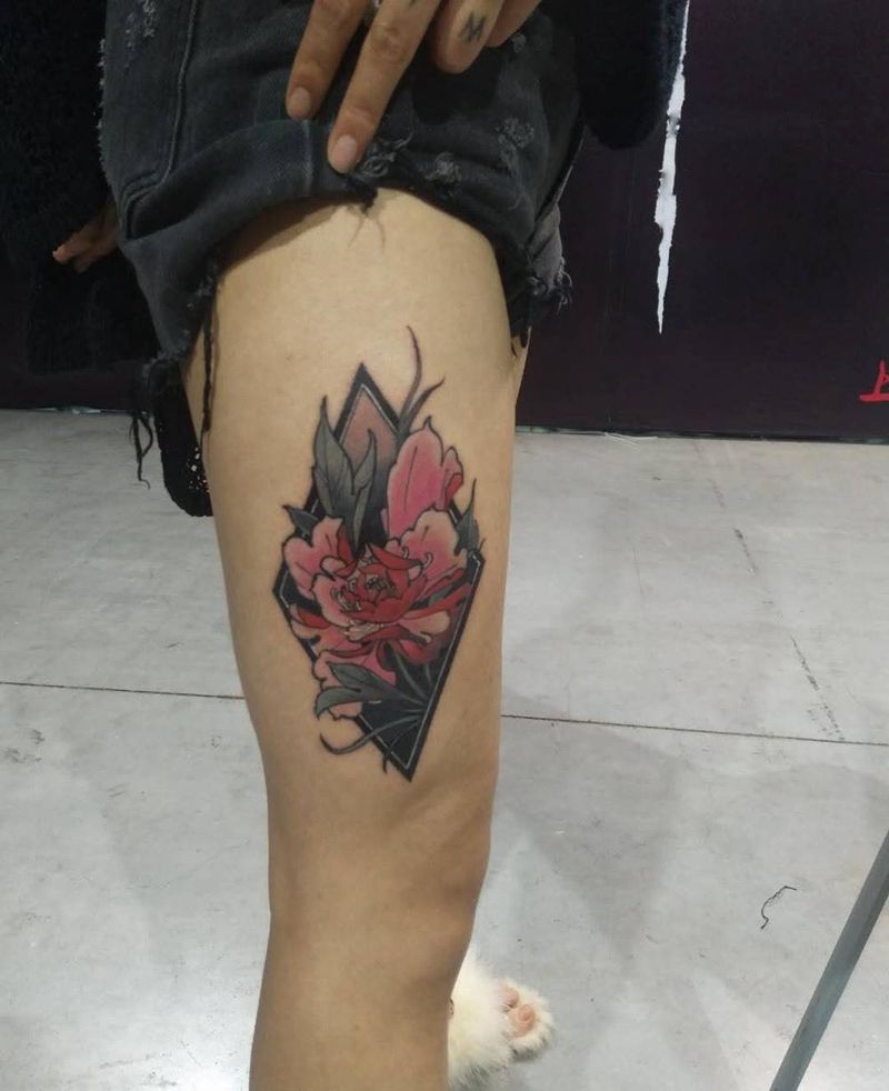 • T网红王老大花腿龙纹身图片_腿部新传统纹身图案
