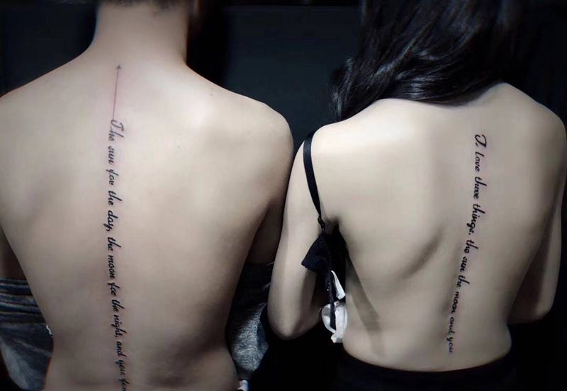 当前位置: 首页 >河北省石家庄市纹身店-李磊刺青会所纹身图案>情侣后背脊柱纹身图片