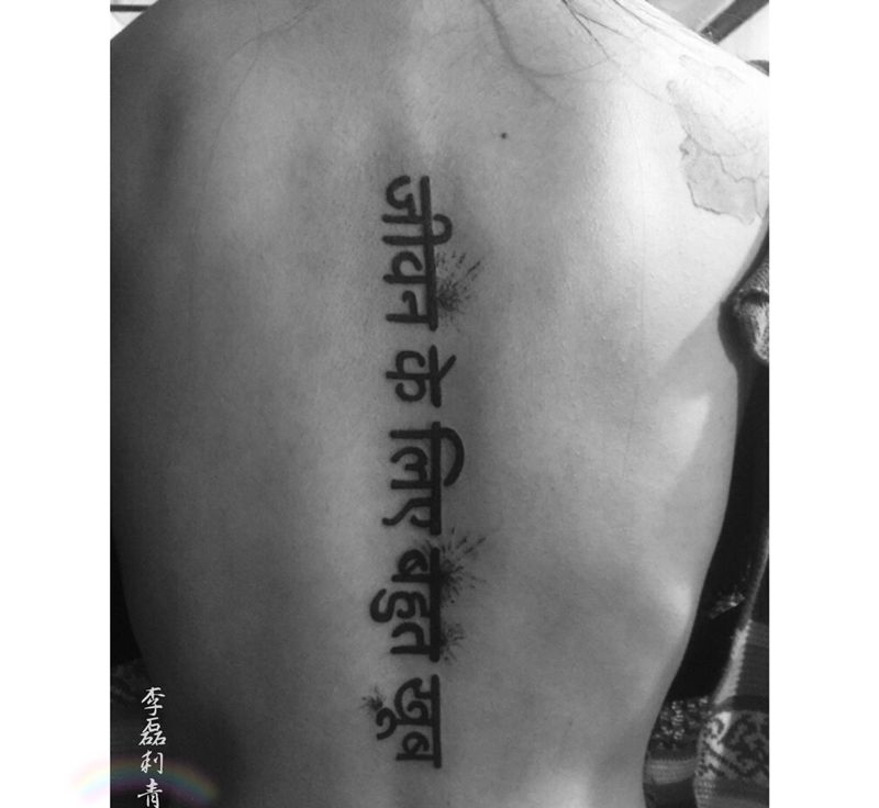 当前位置: 首页 >河北省石家庄市纹身店-李磊刺青会所纹身图案>脊椎梵文纹身图片