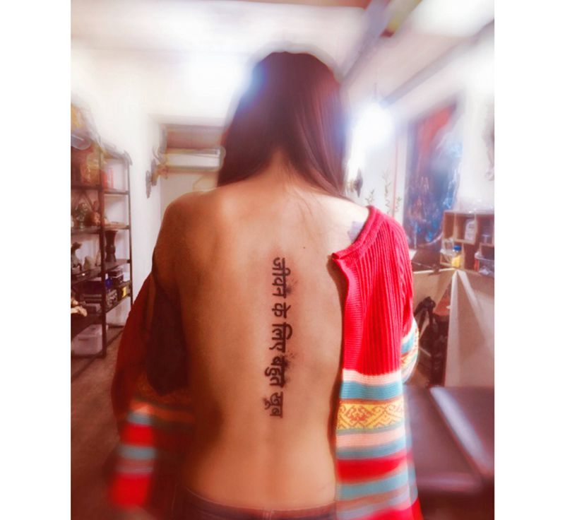 当前位置: 首页 >河北省石家庄市纹身店-李磊刺青会所纹身图案>脊椎梵文纹身图片