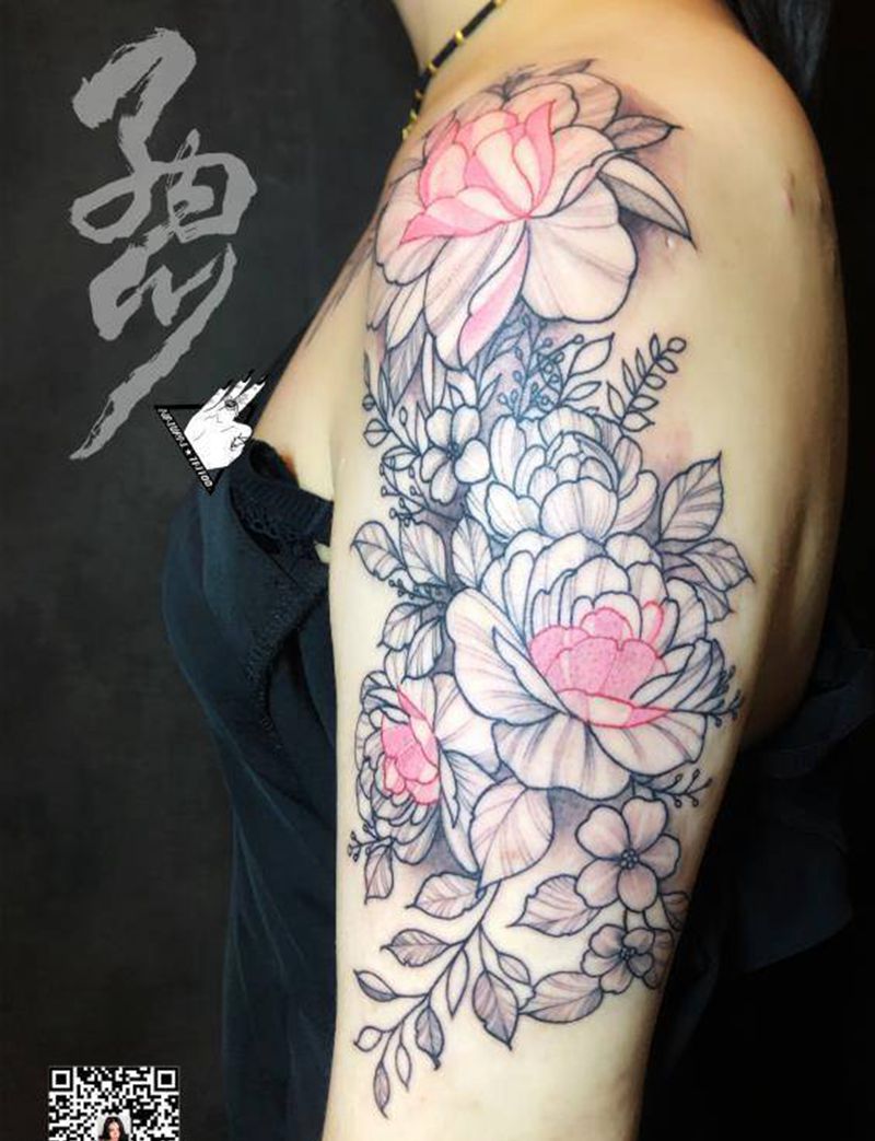 • 女性大花胸纹身_43张霸气漂亮的女性大花胸纹身图案作品