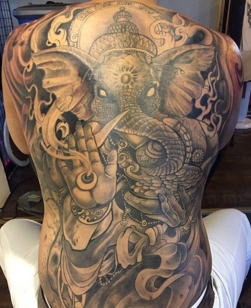 当前位置: 首页 >河北省石家庄市纹身店-李磊刺青会所纹身图案>满背象神纹身图片