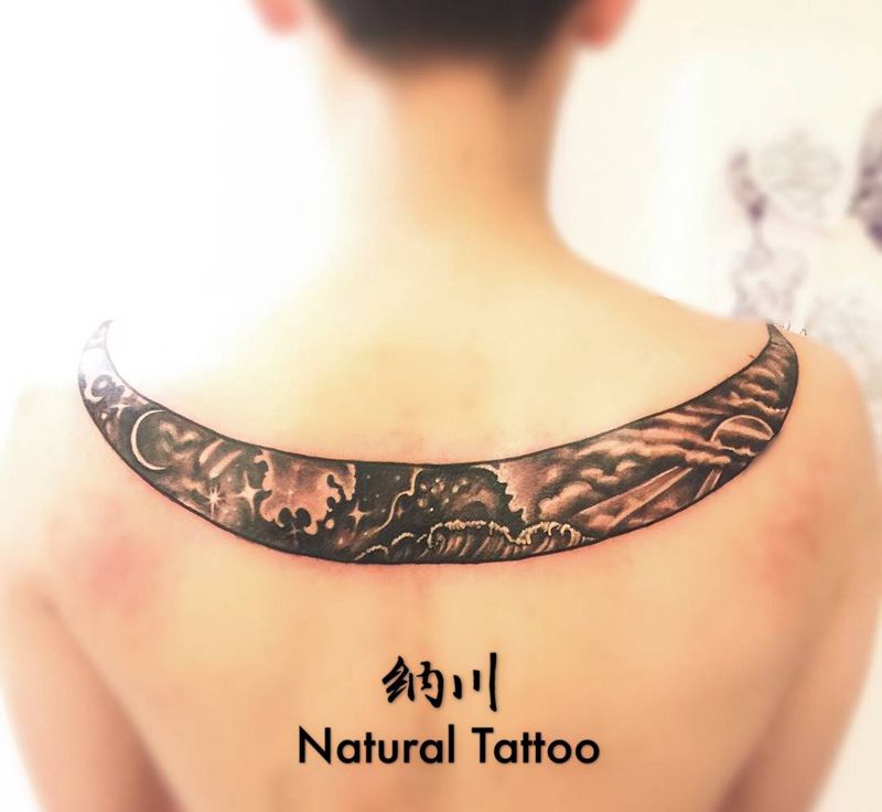当前位置: 首页 >河北省石家庄市纹身店-纳川刺青Natural Tattoo纹身图案>月亮的微笑代表了你的心原创纹身图片_原创欧美背部写实成品纹身图案