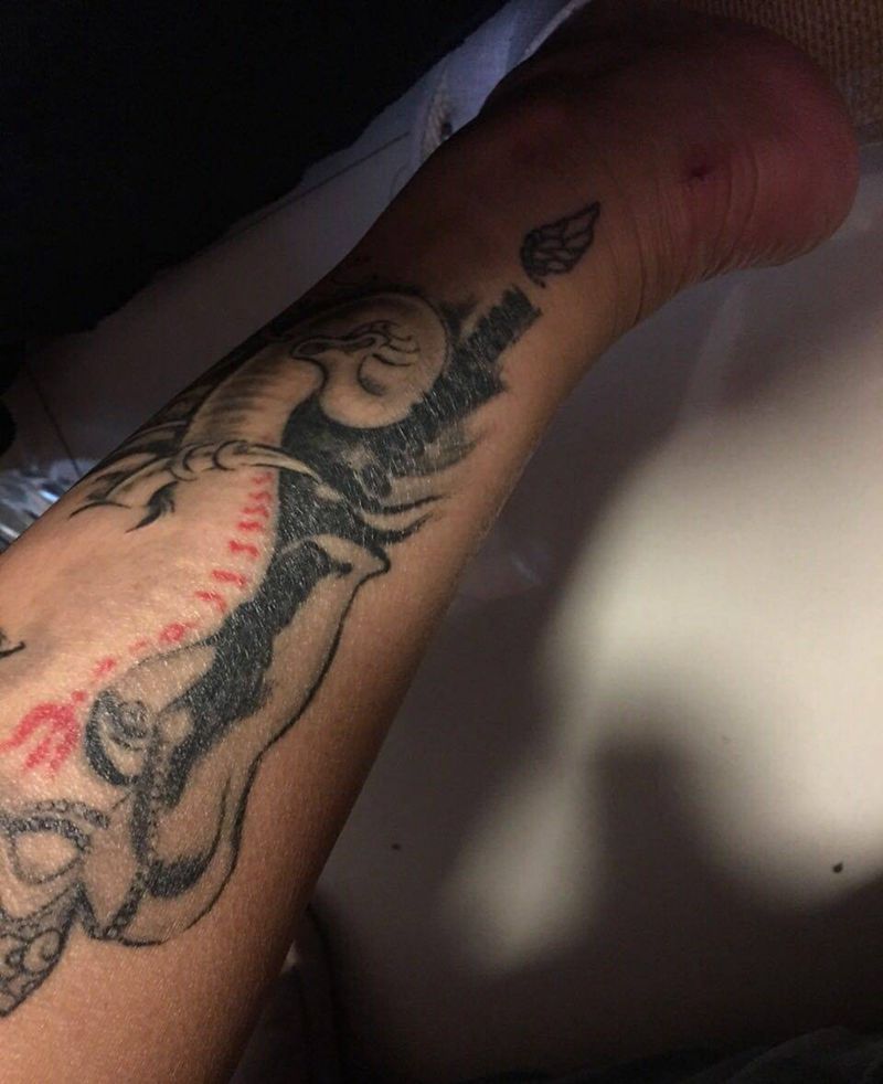 • T包小腿吹火男+阿多福纹身图片_腿部老传统新传统吹火男阿
