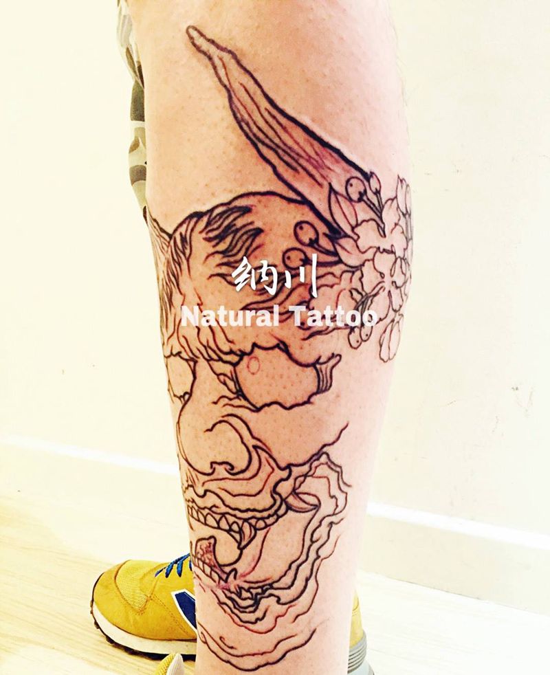 • T网红王老大花腿龙纹身图片_腿部新传统纹身图案
