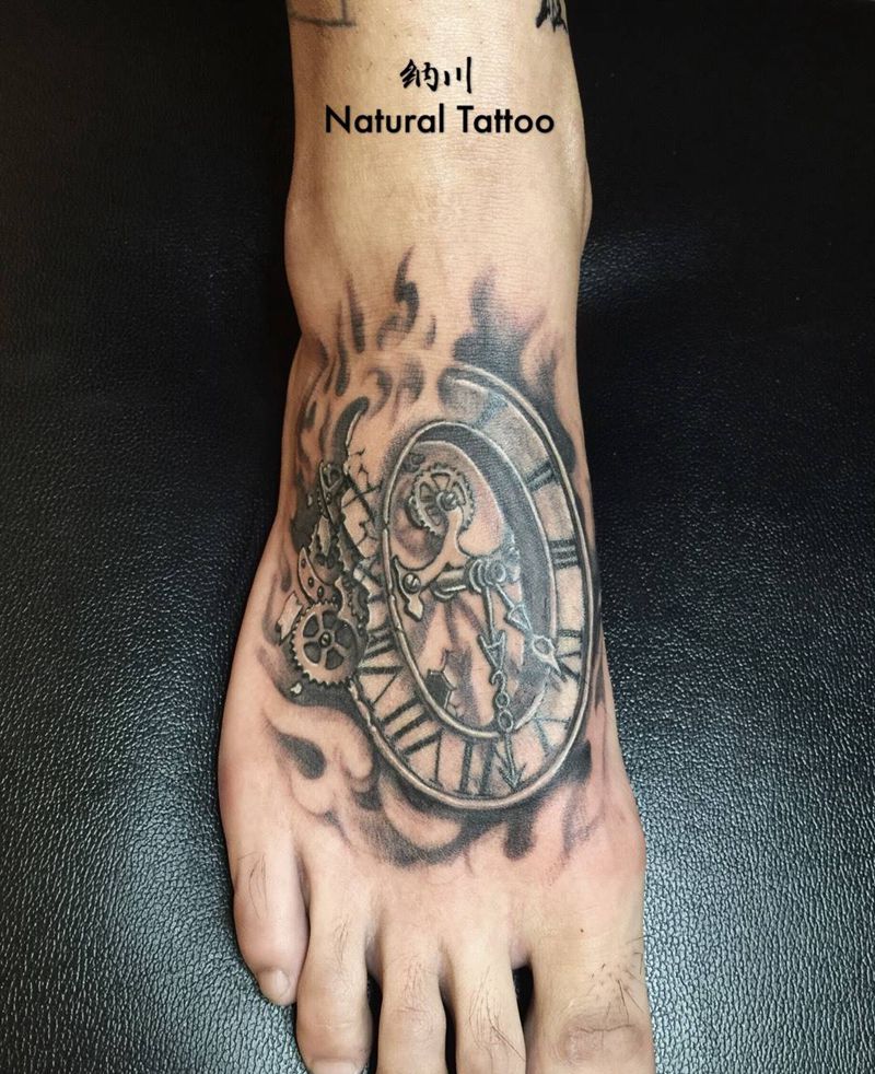 基友之纹---时钟带你走完背字!纹身图片_成品脚部欧美写实原创纹身图案