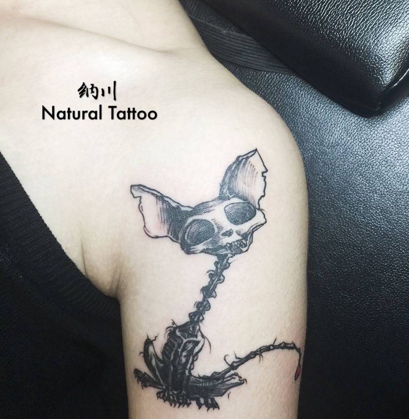 当前位置: 首页 >河北省石家庄市纹身店-纳川刺青Natural Tattoo纹身图案>骷髅猫咪纹身图片_成品手臂欧美清新卡通动物贴纸鬼神纹身图案