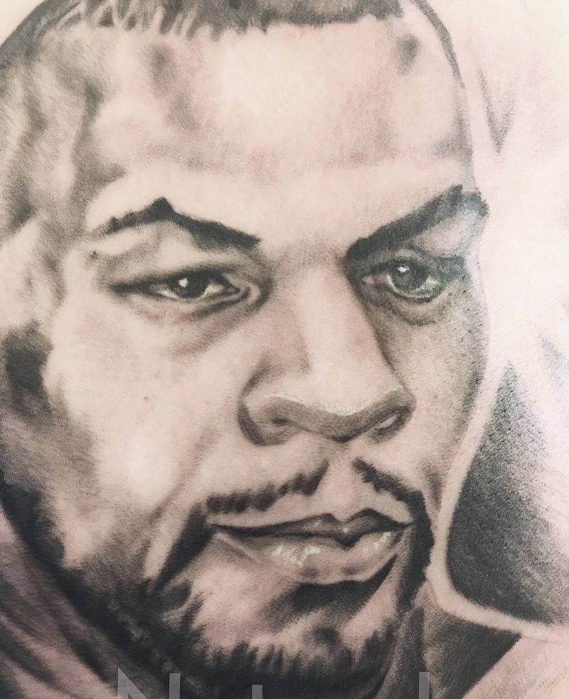 泰森人像纹身图片_成品背部欧美写实肖像人物纹身图案
