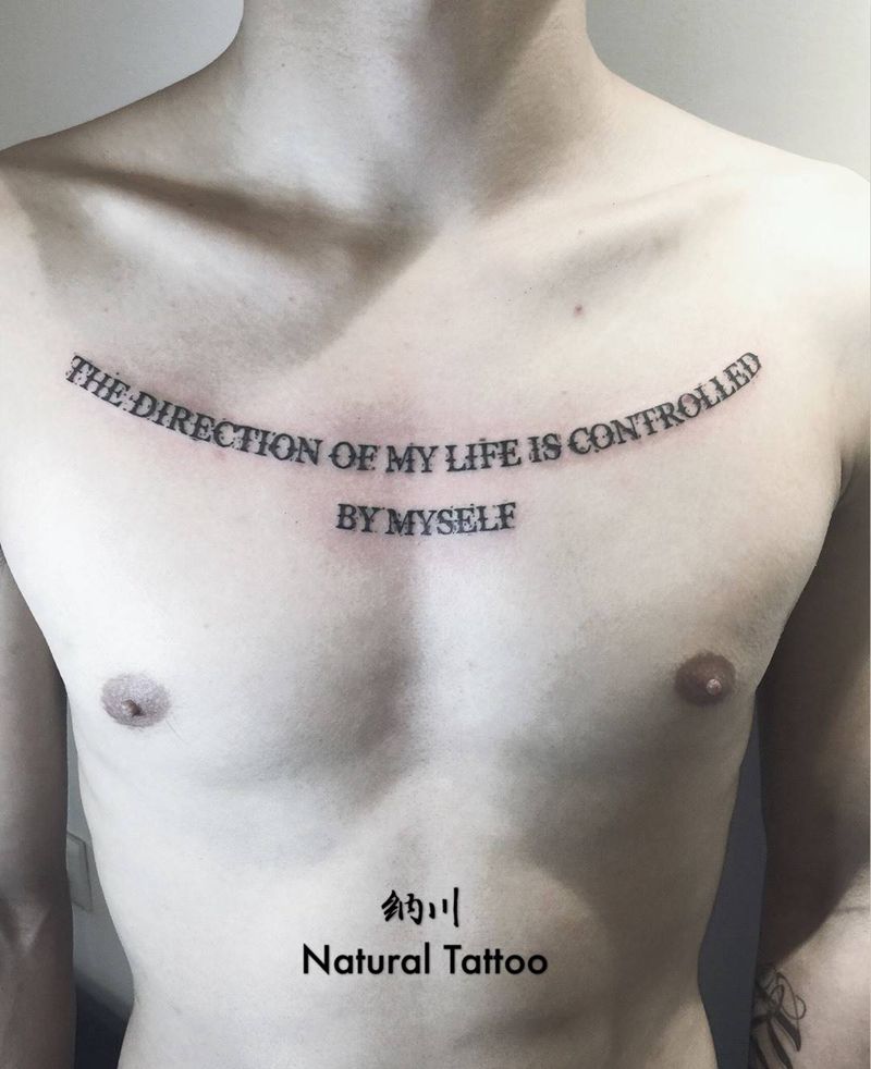 当前位置: 首页 >河北省石家庄市纹身店-纳川刺青Natural Tattoo纹身图案>送给自己的一句话纹身图片_成品胸部欧美字符原创纹身图案