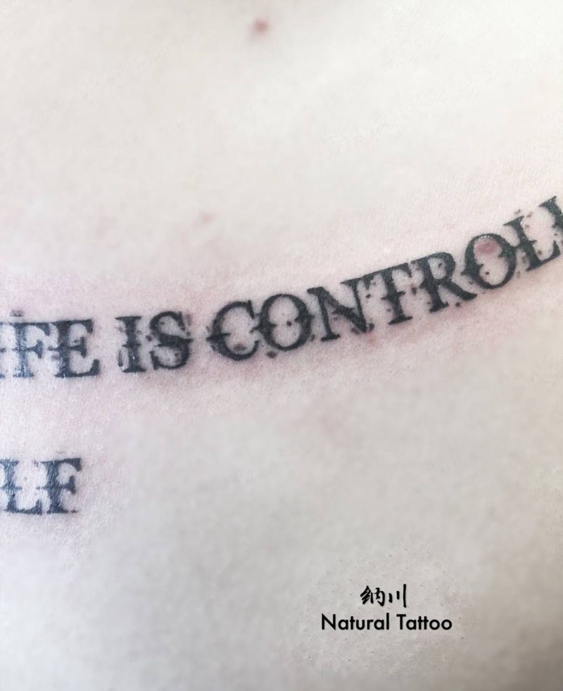 当前位置: 首页 >河北省石家庄市纹身店-纳川刺青Natural Tattoo纹身图案>送给自己的一句话纹身图片_成品胸部欧美字符原创纹身图案