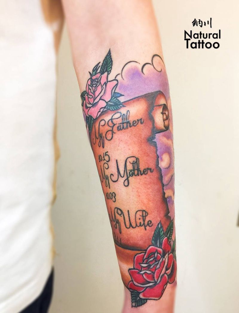 • T家庭图,一家四口生日纪念!纹身图片_手臂纹身图案