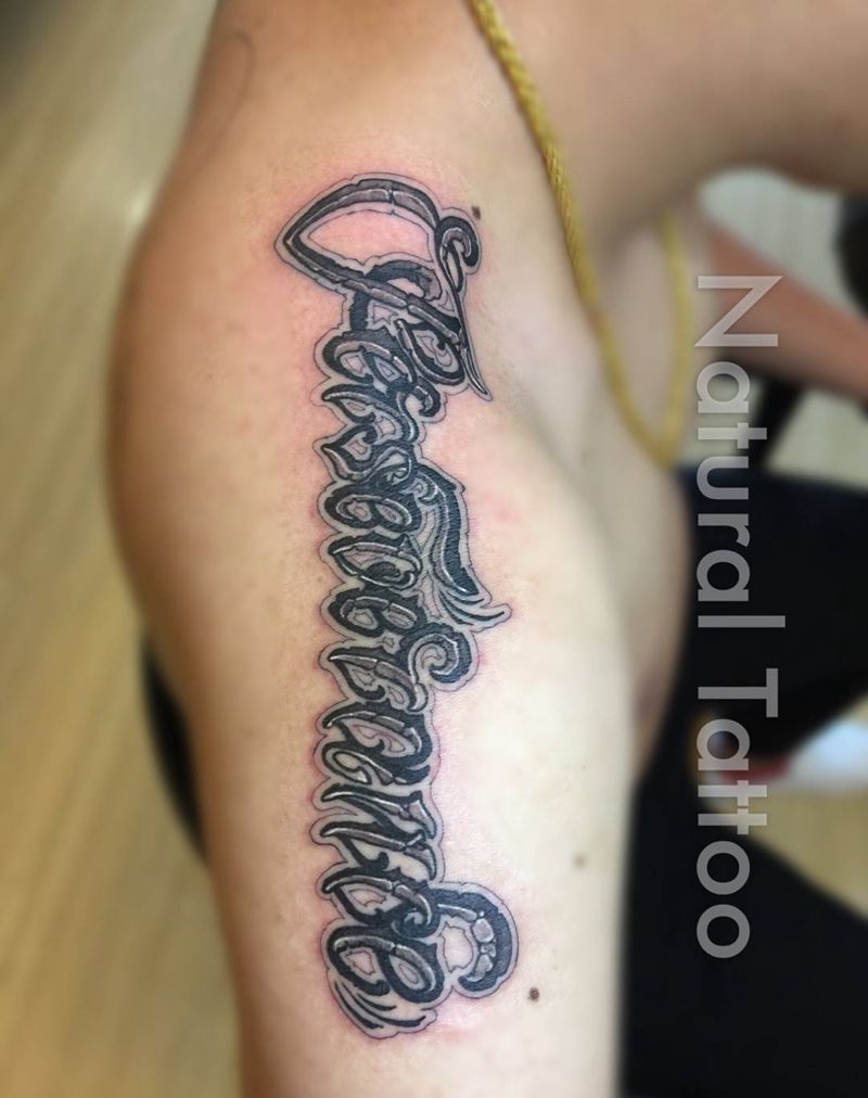 当前位置: 首页 >河北省石家庄市纹身店-纳川刺青Natural Tattoo纹身图案>chicano英文纹身图片_成品肩部欧美写实字符原创黑白纹身图案