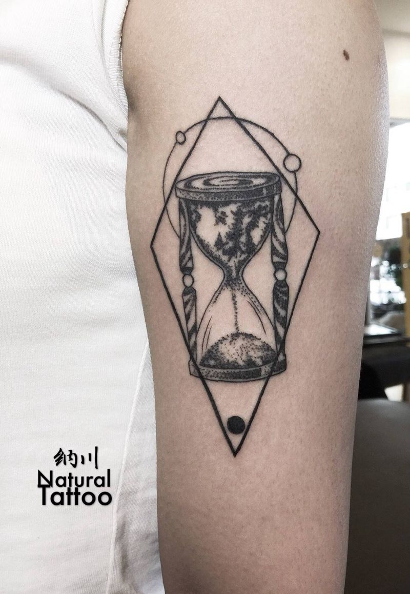 当前位置: 首页 >河北省石家庄市纹身店-纳川刺青Natural Tattoo纹身图案>沙漏纹身图片_成品手臂欧美点刺清新静物纹身图案