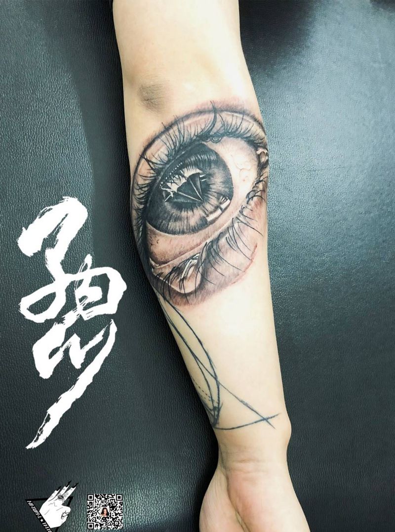 按照客人的要求眼睛里纹身图片_手臂New School欧美写实黑白文身纹身图案