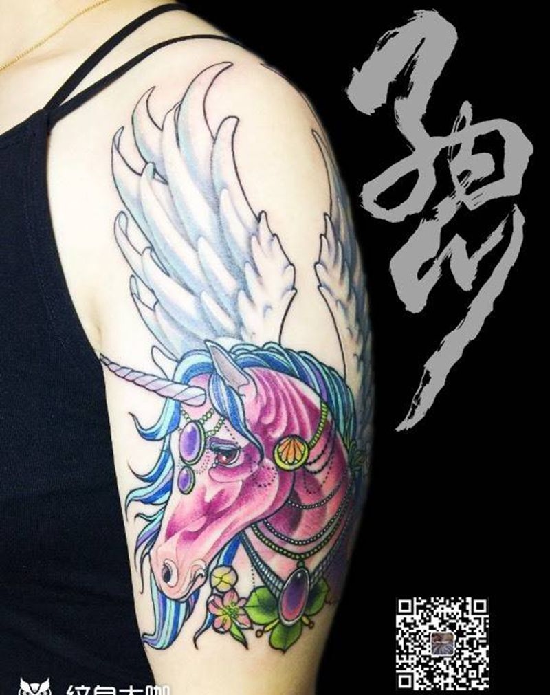 独角兽纹身图片_成品手臂欧美动物植物原创卡通school重彩纹身图案