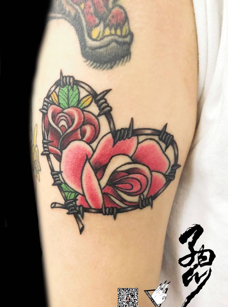 当前位置: 首页 >河北省石家庄市纹身店-纳川刺青Natural Tattoo纹身图案>原创荆刺玫瑰纹身图片_手臂老传统Old School欧美彩色纹身图案