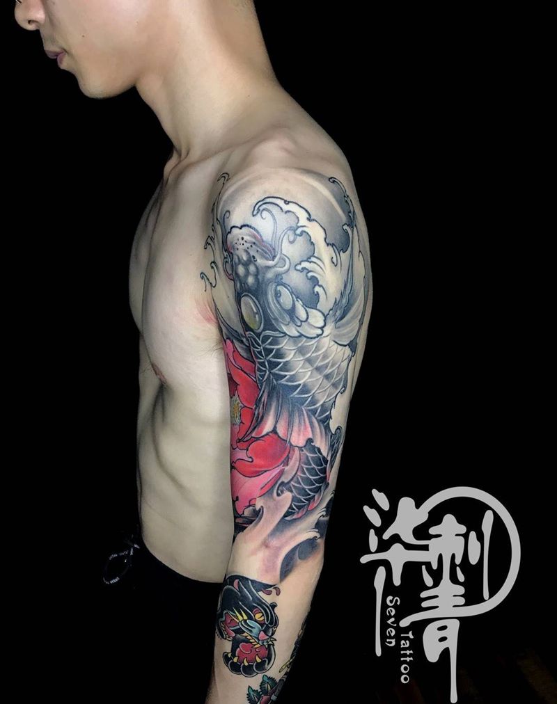 当前位置: 首页 >河北省石家庄市纹身店-柒刺青纹身纹身图案>锦鲤纹身图片_手臂新传统老传统纹身图案