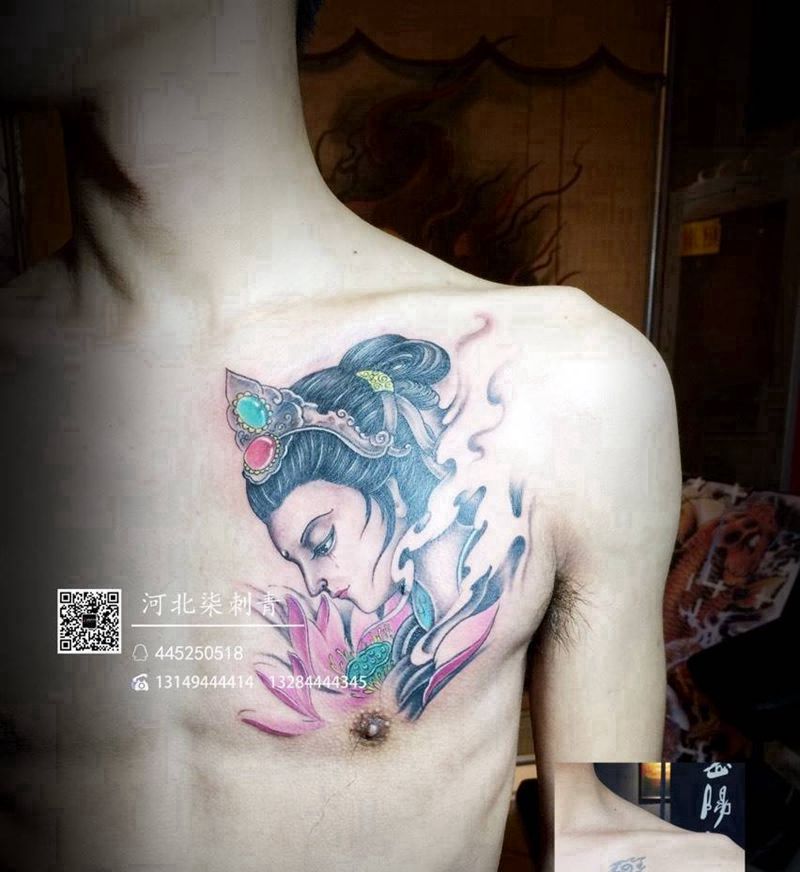 • 女性大花胸纹身_43张霸气漂亮的女性大花胸纹身图案作品