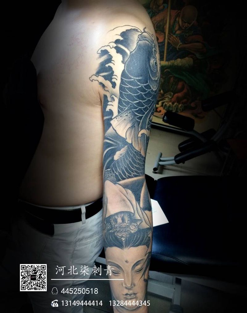 当前位置: 首页 >河北省石家庄市纹身店-柒刺青纹身纹身图案>花臂遮盖纹身图片_成品手臂原创传统纹身图案