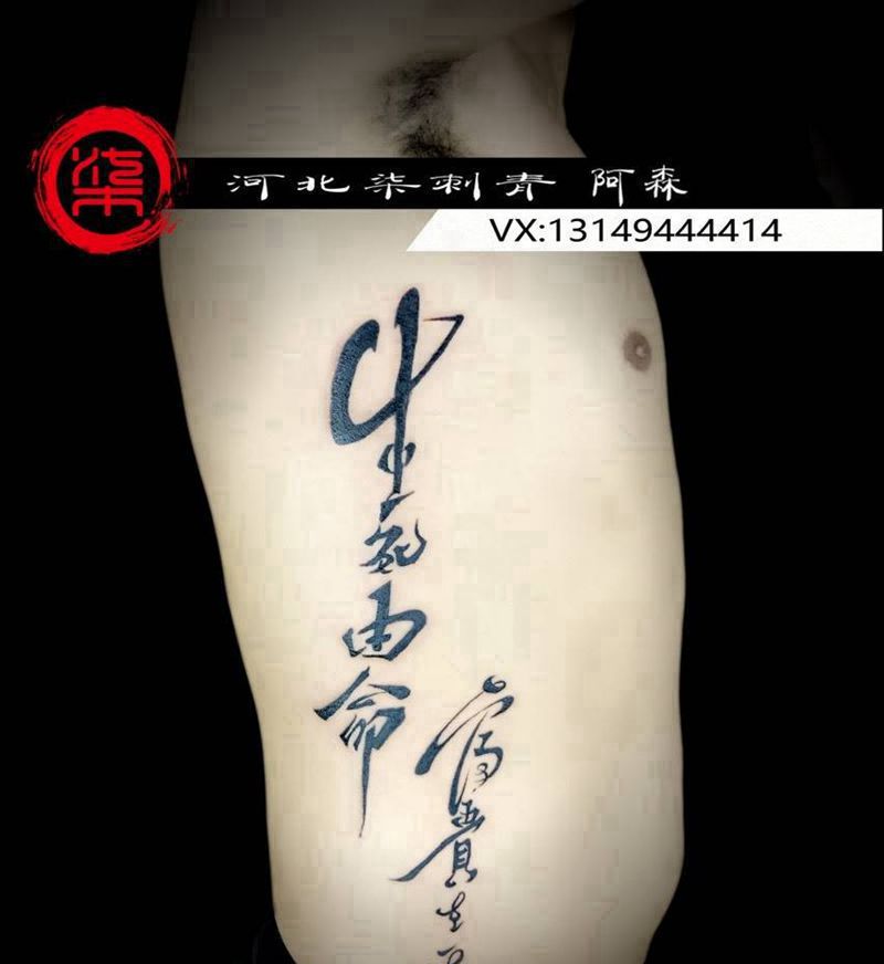 当前位置: 首页 >河北省石家庄市纹身店-柒刺青纹身纹身图案>生死有命富贵在天纹身图片_成品腹部传统字符纹身图案