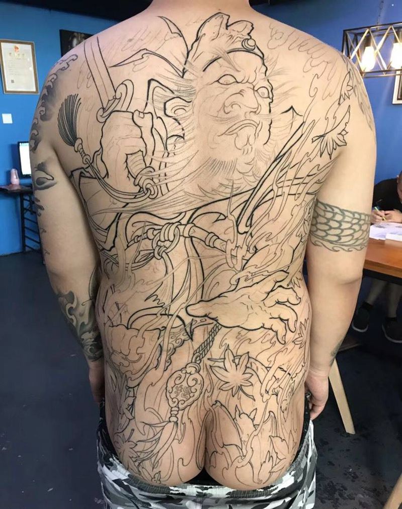 • 黑灰满背纹身图案