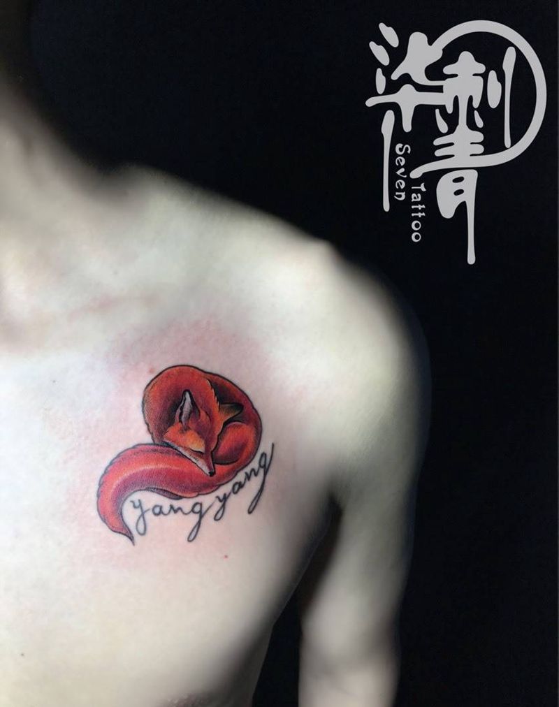 当前位置: 首页 >河北省石家庄市纹身店-柒刺青纹身纹身图案>狐狸纹身图片_成品颈部肩部清新传统欧美动物纹身图案
