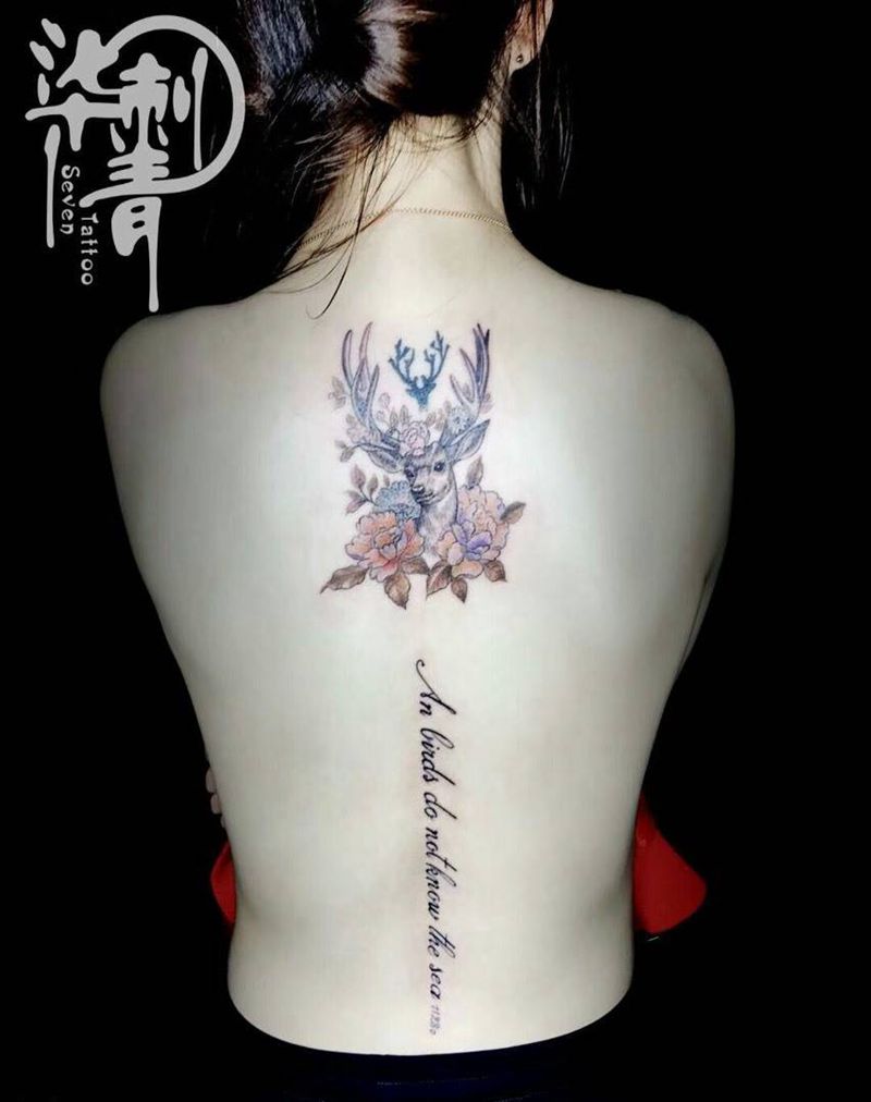 当前位置: 首页 >河北省石家庄市纹身店-柒刺青纹身纹身图案>旧纹身修改添加纹身图片_成品肩部背部清新传统字符图腾原创纹身图案