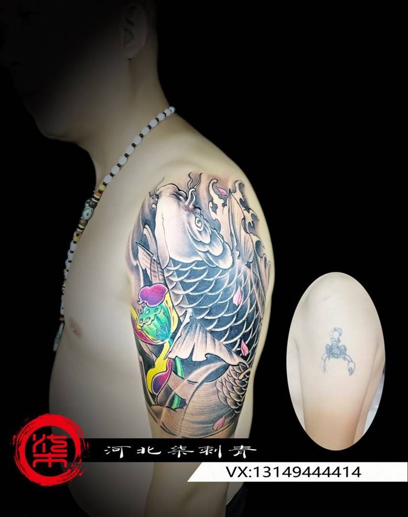 当前位置: 首页 >河北省石家庄市纹身店-柒刺青纹身纹身图案>鱼 遮盖纹身图片_成品手臂传统动物遮盖纹身图案