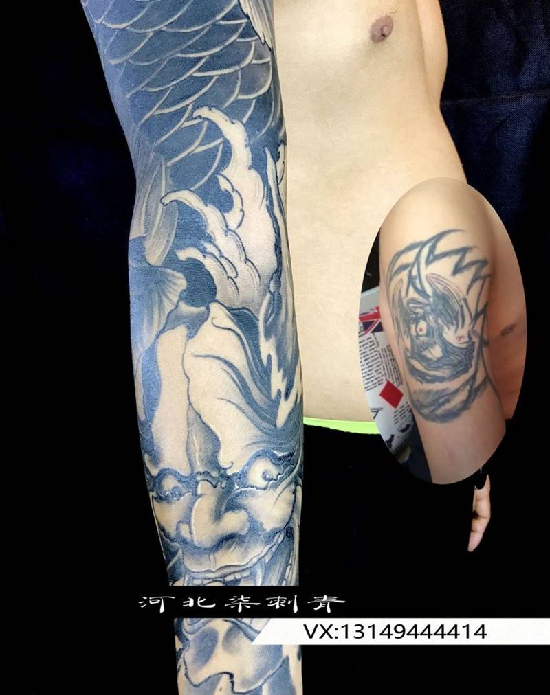 遮盖作品花臂纹身图片_成品手臂传统原创纹身图案