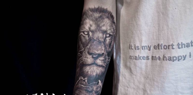 当前位置: 首页 >河北省石家庄市纹身店-指墨刺青纹身图案>写实狮子纹身图片