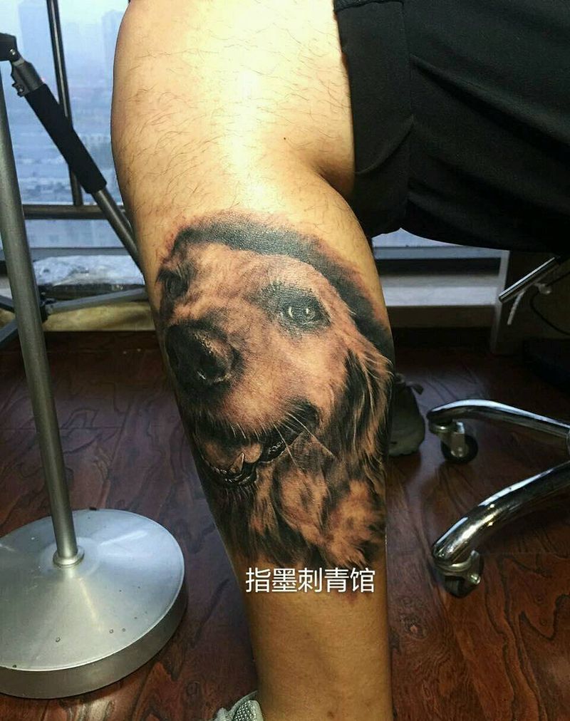 当前位置: 首页 >河北省石家庄市纹身店-指墨刺青纹身图案>写实金毛纹身图片