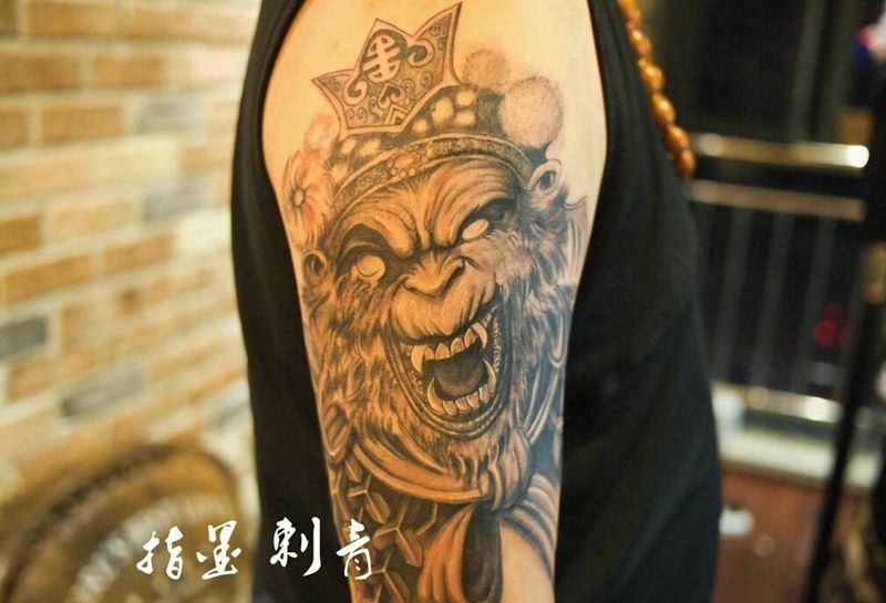 齐天大圣孙悟空纹身图片_手臂传统写实鬼神成品纹身图案