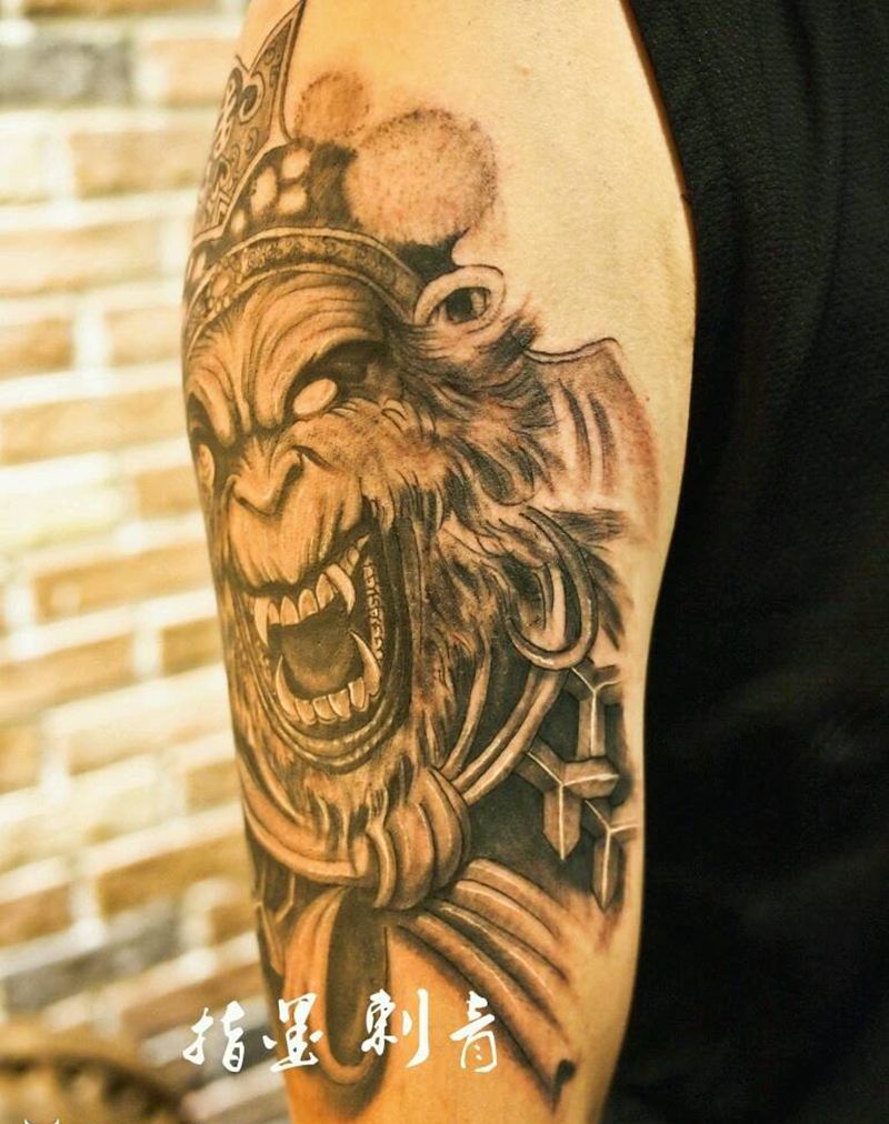 齐天大圣孙悟空纹身图片_手臂传统写实鬼神成品纹身图案