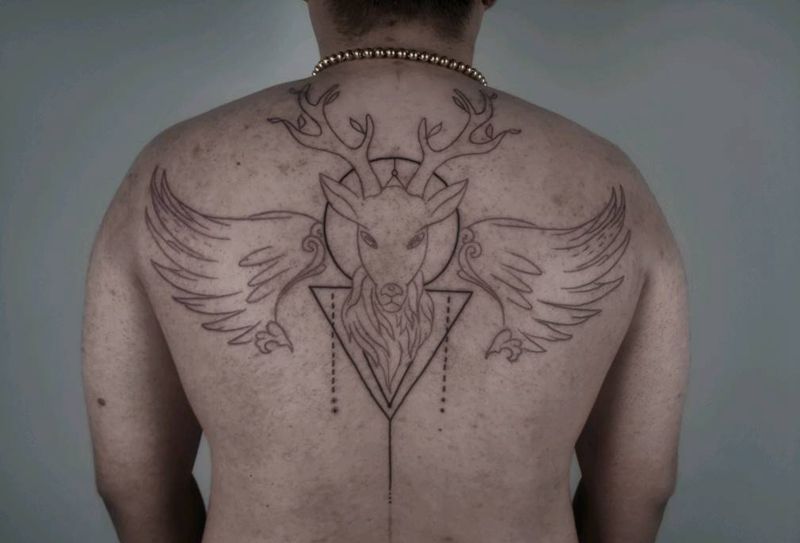 当前位置: 首页 >河北省石家庄市纹身店-術刺青纹身图案>鹿纹身图片_背部欧美写实鹿纹身图案