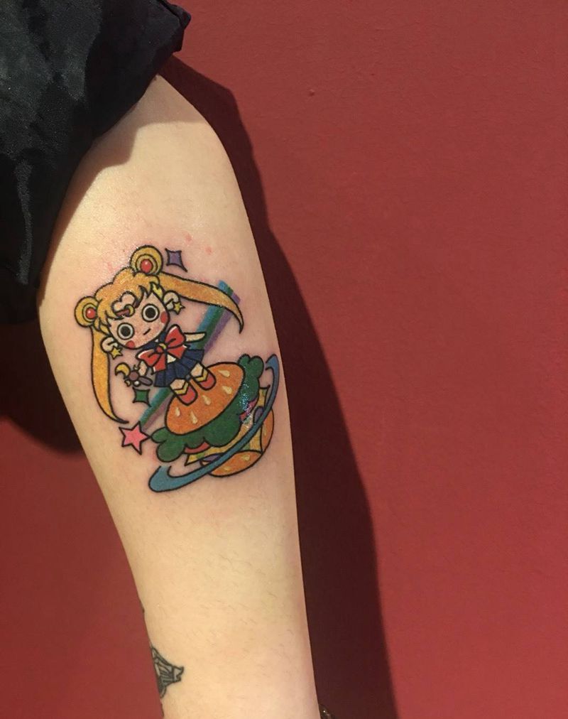 • T网红王老大花腿龙纹身图片_腿部新传统纹身图案