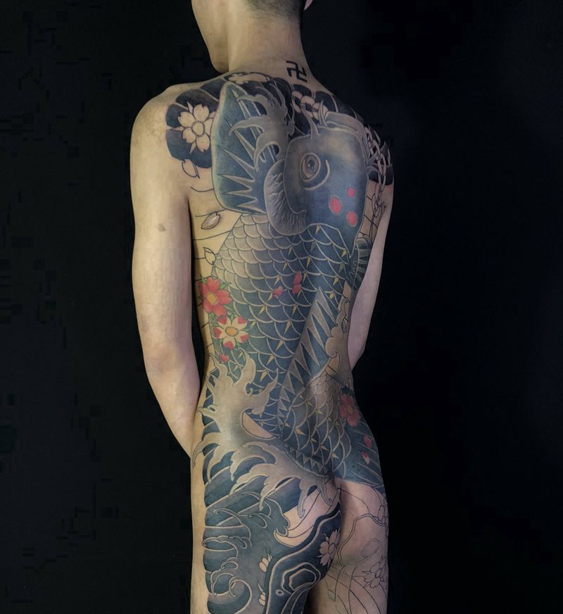 当前位置: 首页 >河北省石家庄市纹身店-衡水墨云刺青艺术会所纹身图案>传统鱼满背纹身图片_背部老传统鱼纹身图案