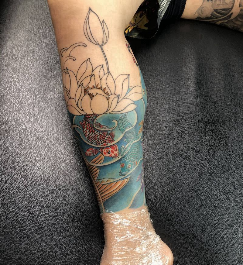 当前位置: 首页 >河北省石家庄市纹身店-衡水墨云刺青艺术会所纹身图案>鲤鱼小腿进度纹身图片_腿部手臂新传统老传统纹身图案